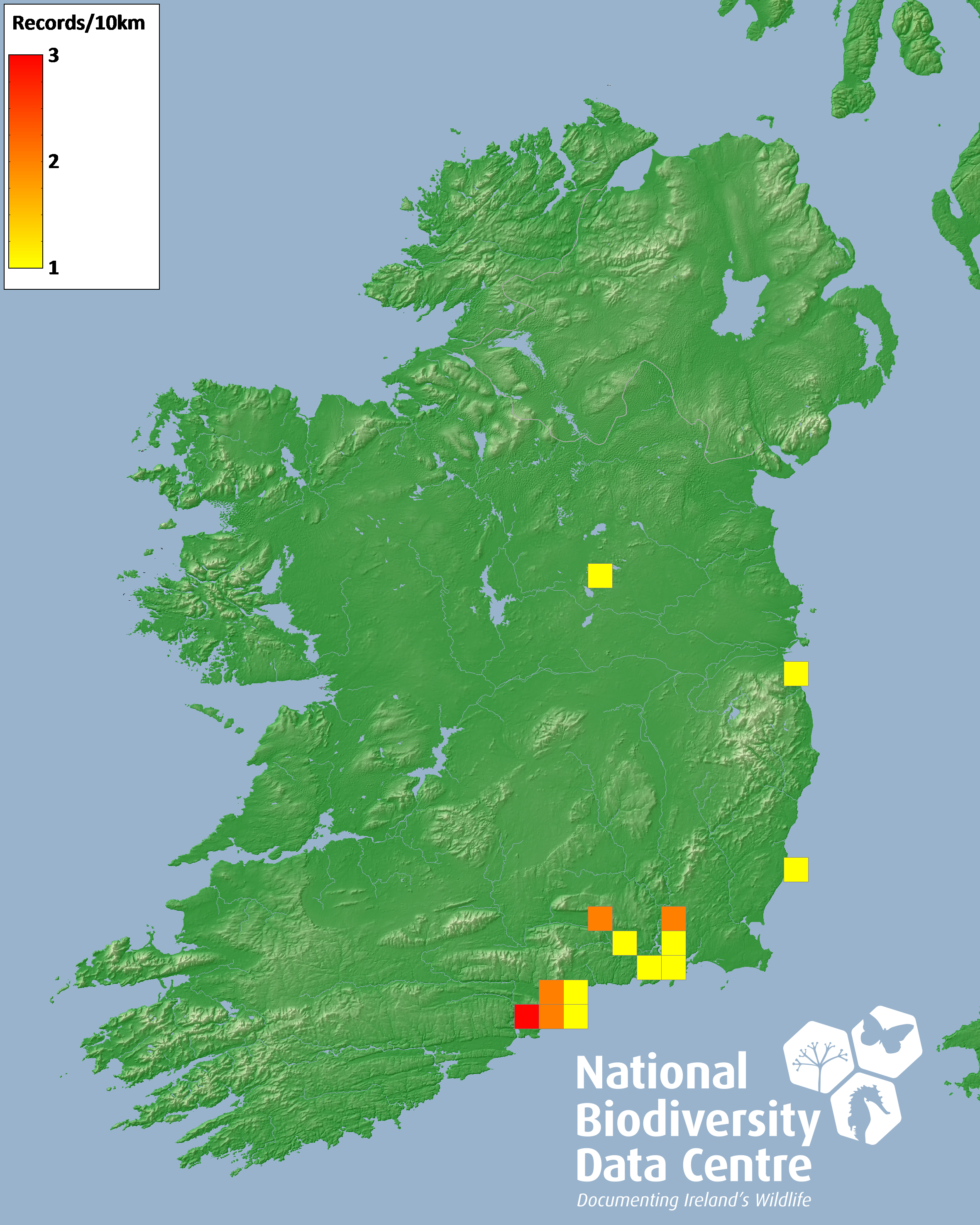 Distribution of the number of records recorded within each 10km grid square (ITM).Marine Map - 50km