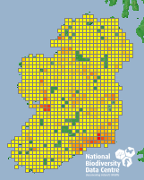 Distribution of the number of records recorded within each 10km grid square (ITM).Marine Map - 50km