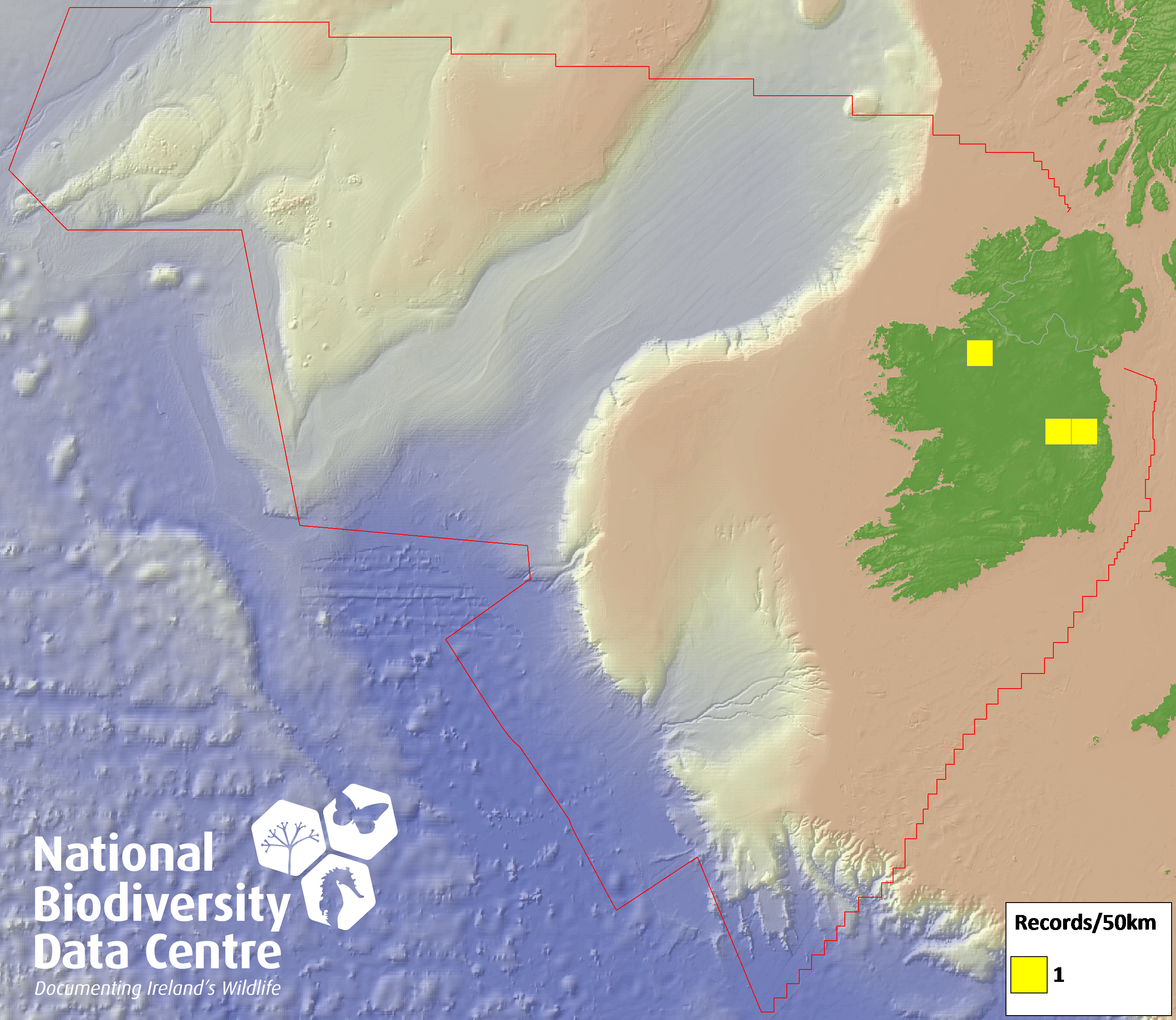 Distribution of the number of records recorded within each 10km grid square (ITM).Marine Map - 50km