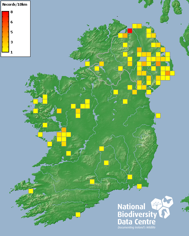 Distribution of the number of records recorded within each 10km grid square (ITM).Marine Map - 50km