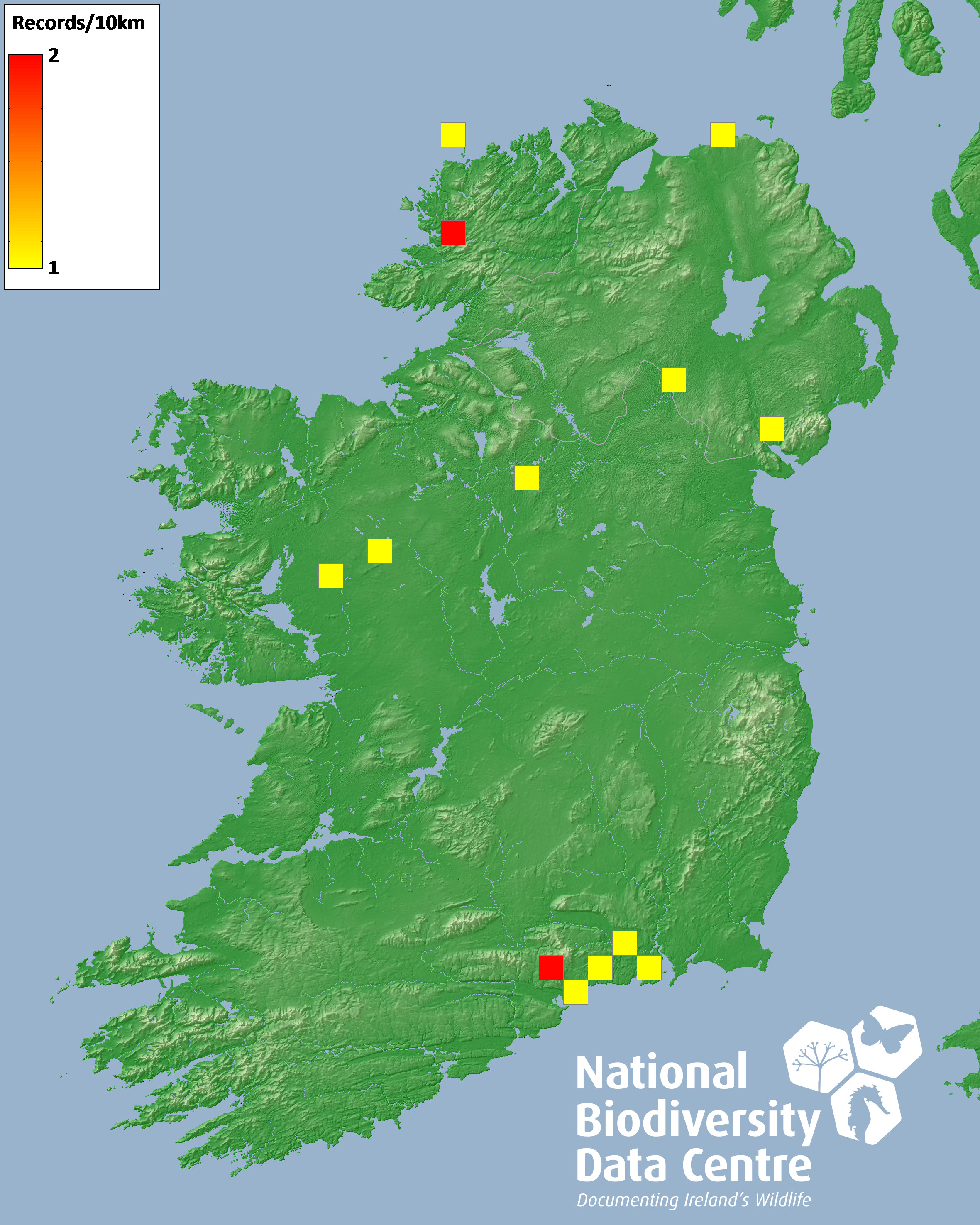Distribution of the number of records recorded within each 10km grid square (ITM).Marine Map - 50km