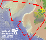 Distribution of the number of records recorded within each 10km grid square (ITM).Marine Map - 50km