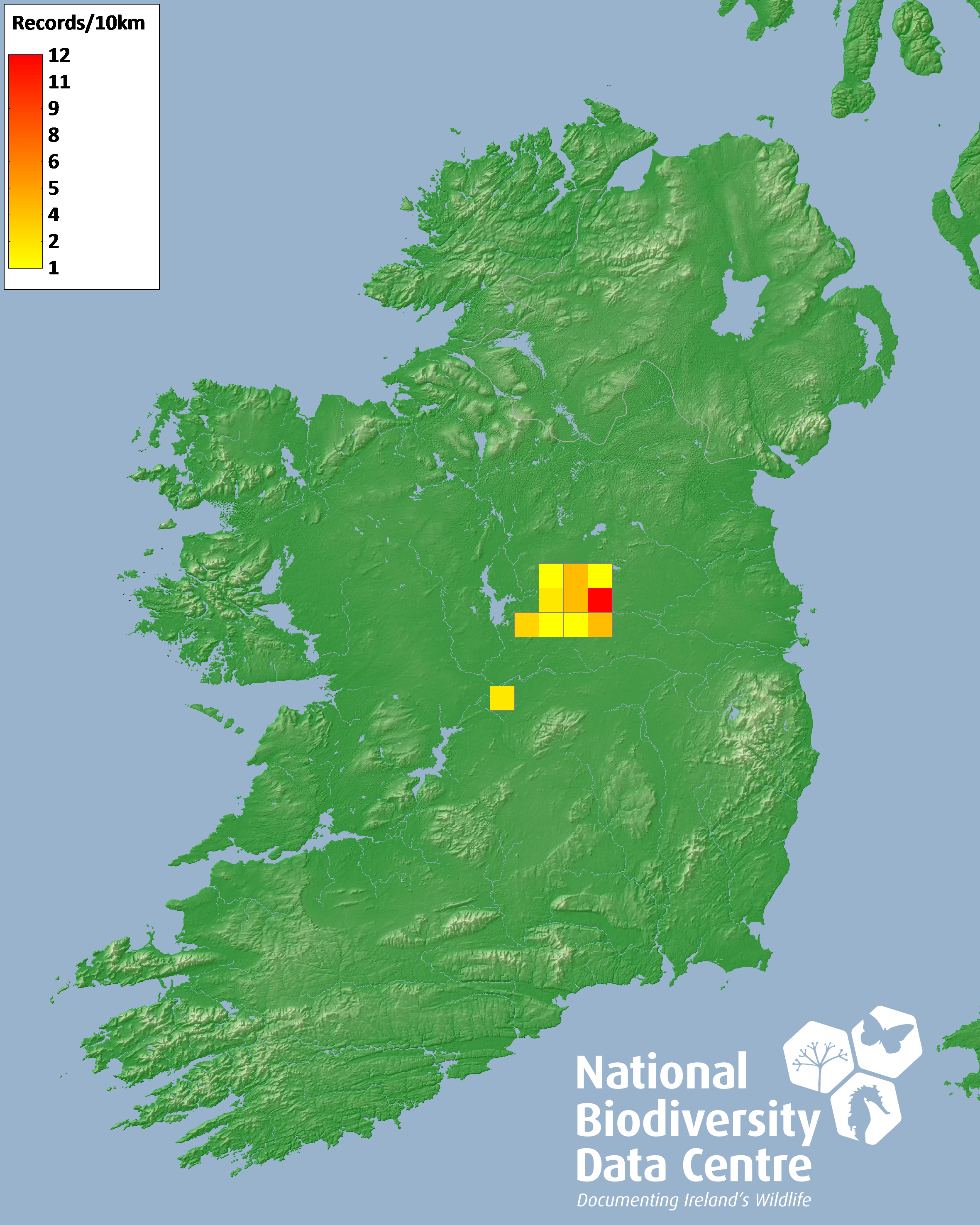 Distribution of the number of records recorded within each 10km grid square (ITM).Marine Map - 50km