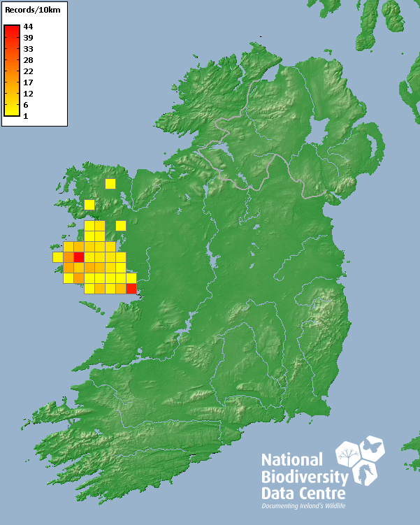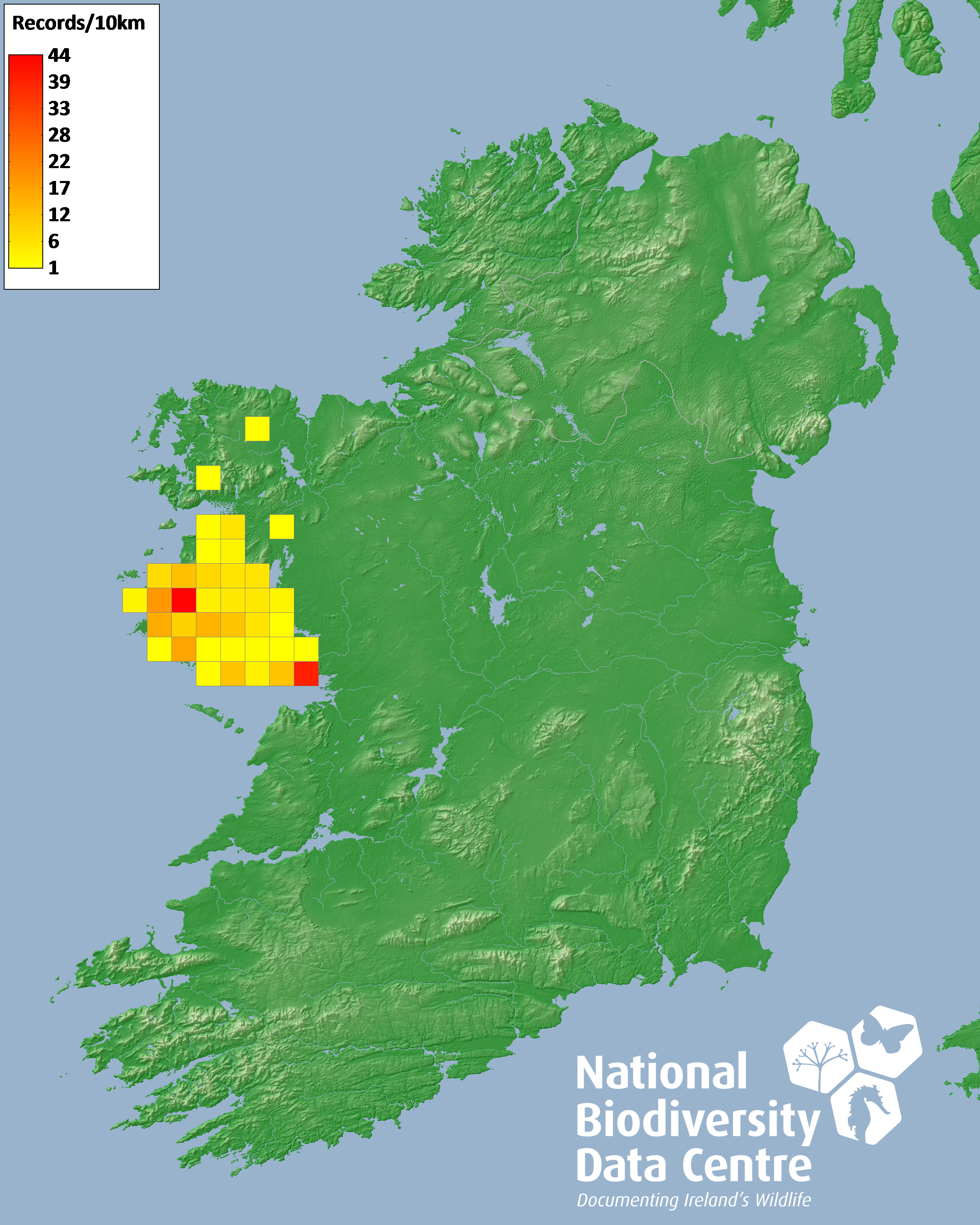 Distribution of the number of records recorded within each 10km grid square (ITM).Marine Map - 50km