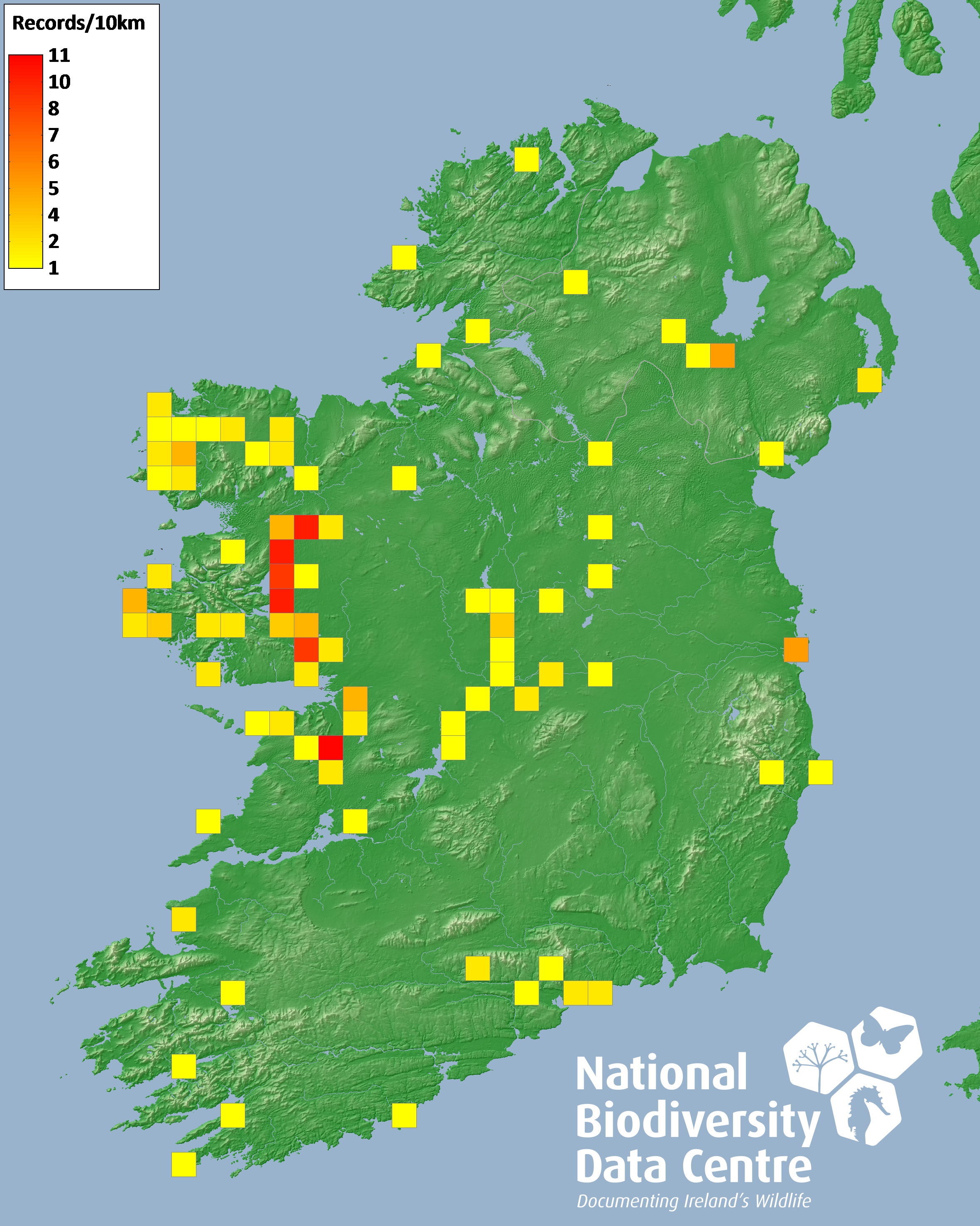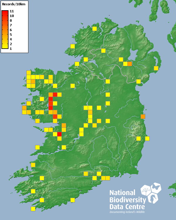 Distribution of the number of records recorded within each 10km grid square (ITM).Marine Map - 50km