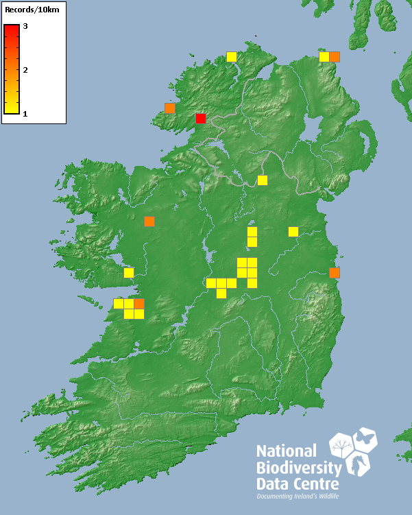 Distribution of the number of records recorded within each 10km grid square (ITM).Marine Map - 50km