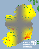 Distribution of the number of records recorded within each 10km grid square (ITM).Marine Map - 50km