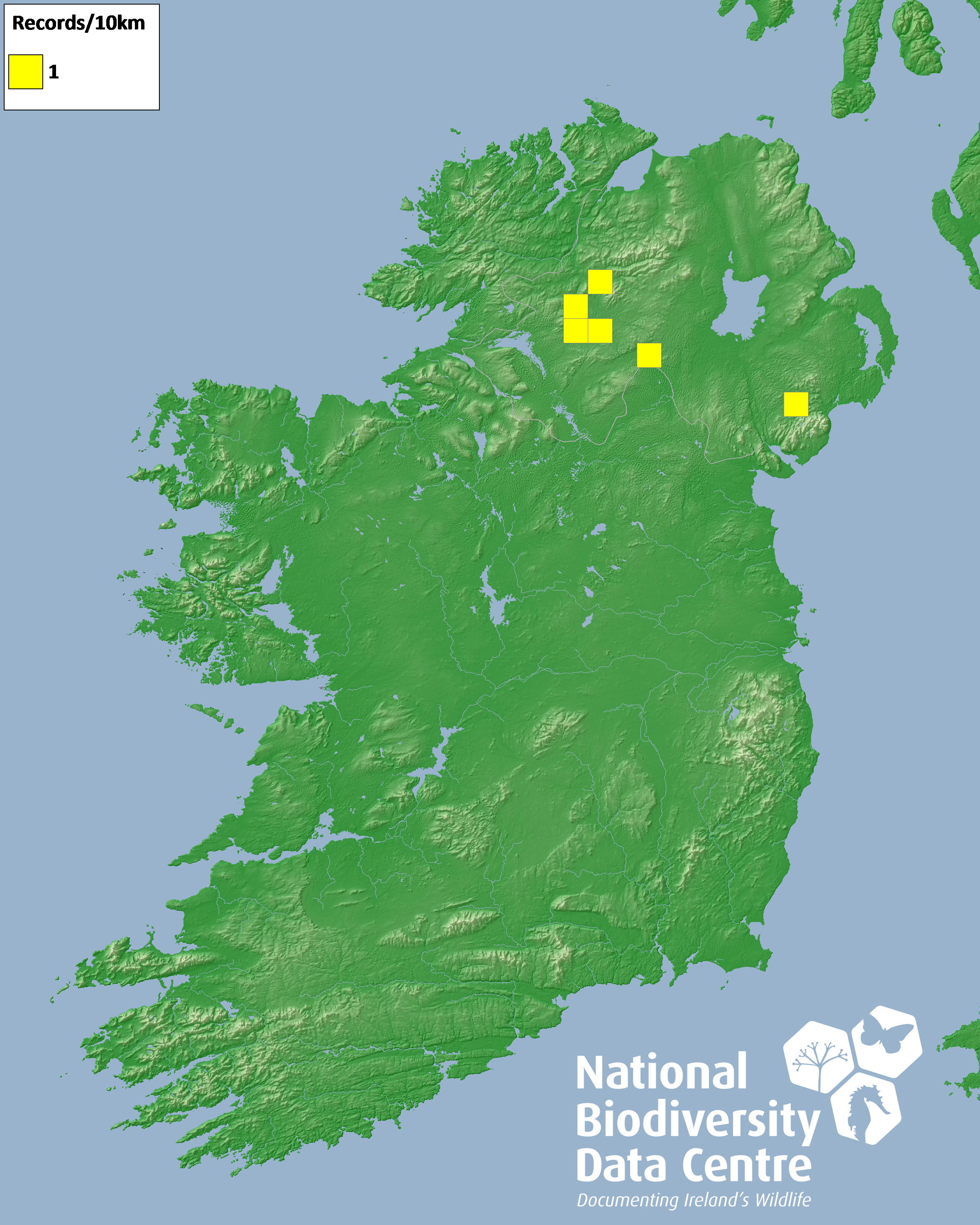 Distribution of the number of records recorded within each 10km grid square (ITM).Marine Map - 50km
