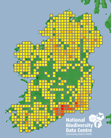 Distribution of the number of records recorded within each 10km grid square (ITM).Marine Map - 50km