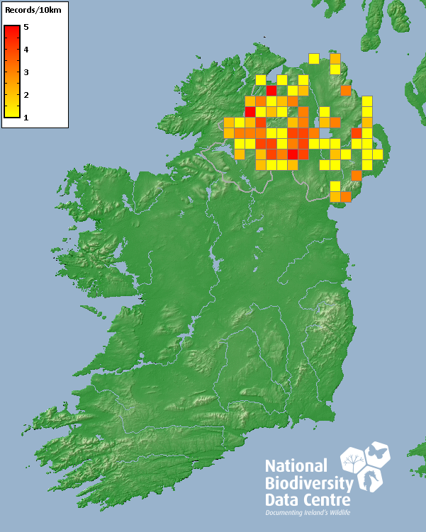 Distribution of the number of records recorded within each 10km grid square (ITM).Marine Map - 50km