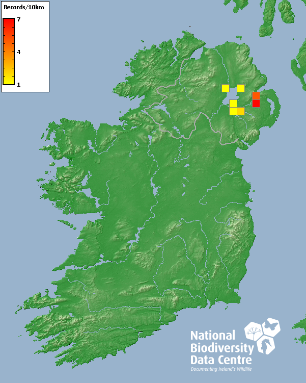 Distribution of the number of records recorded within each 10km grid square (ITM).Marine Map - 50km