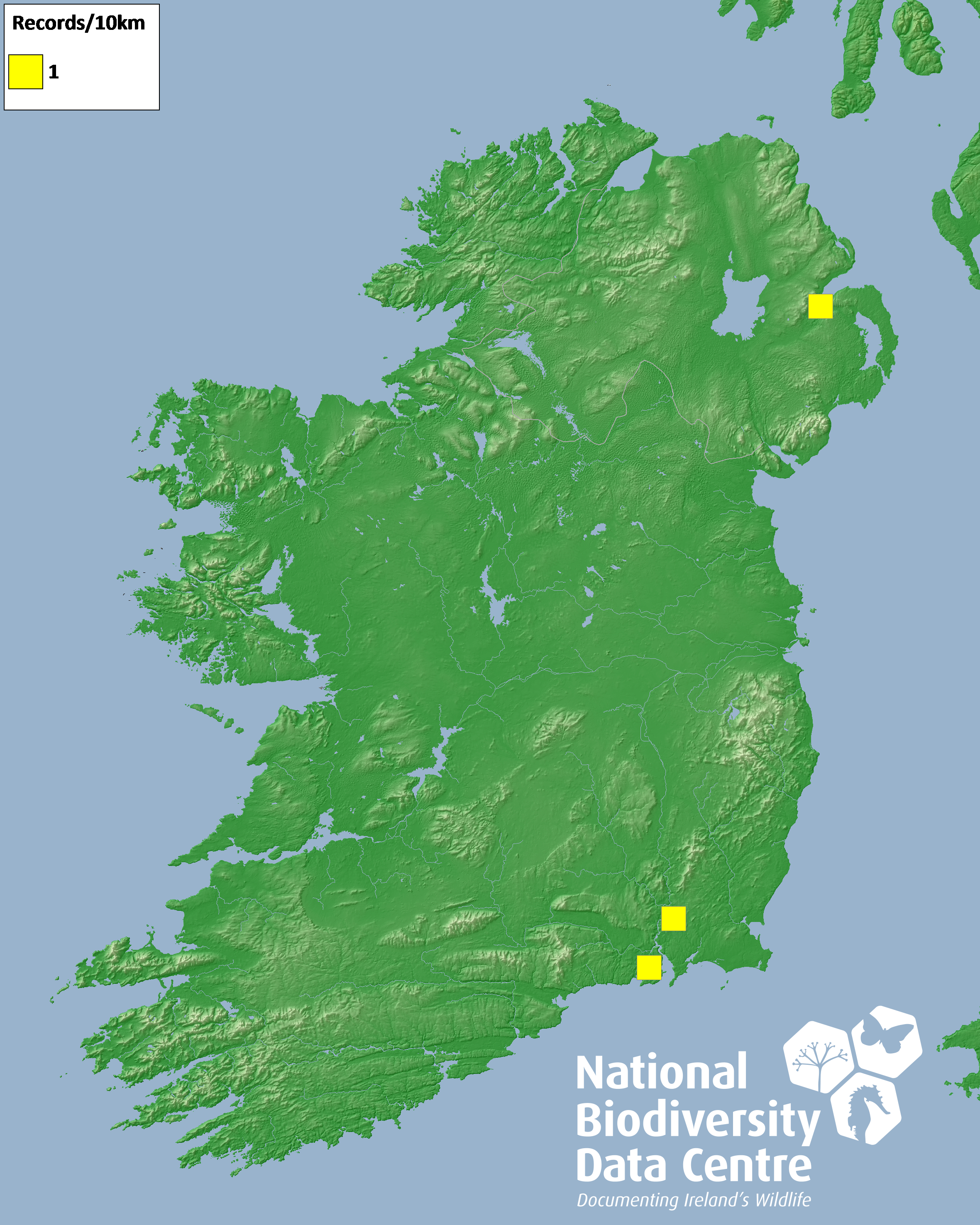 Distribution of the number of records recorded within each 10km grid square (ITM).Marine Map - 50km