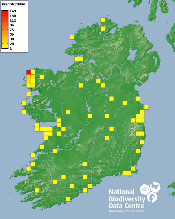 Distribution of the number of records recorded within each 10km grid square (ITM).Marine Map - 50km