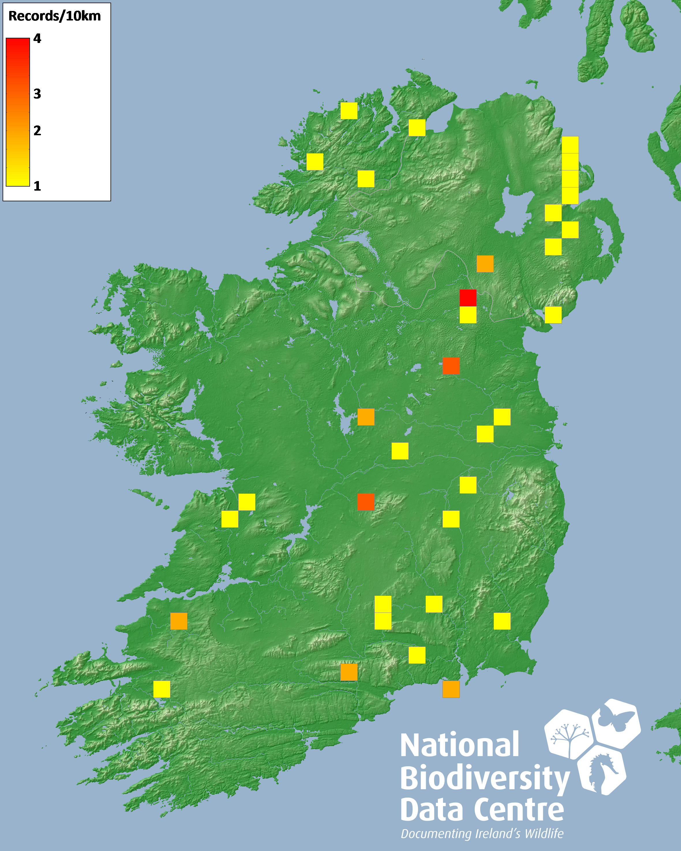 Distribution of the number of records recorded within each 10km grid square (ITM).Marine Map - 50km
