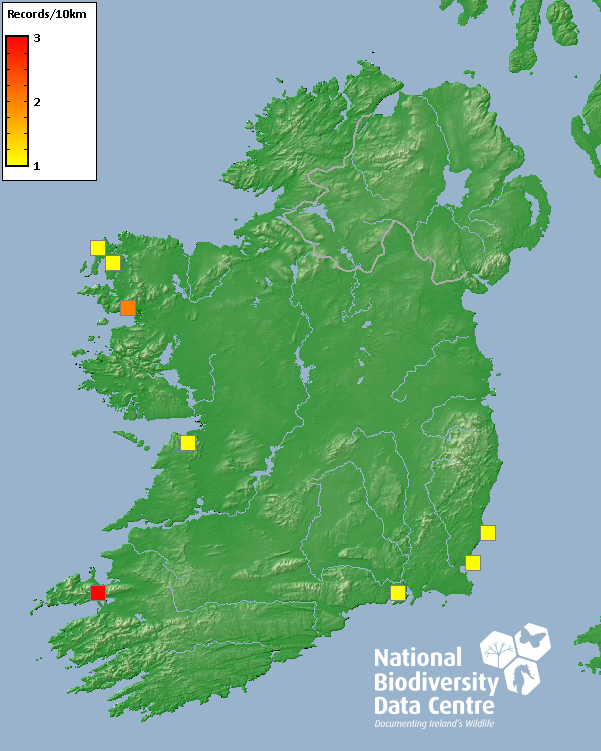 Distribution of the number of records recorded within each 10km grid square (ITM).Marine Map - 50km