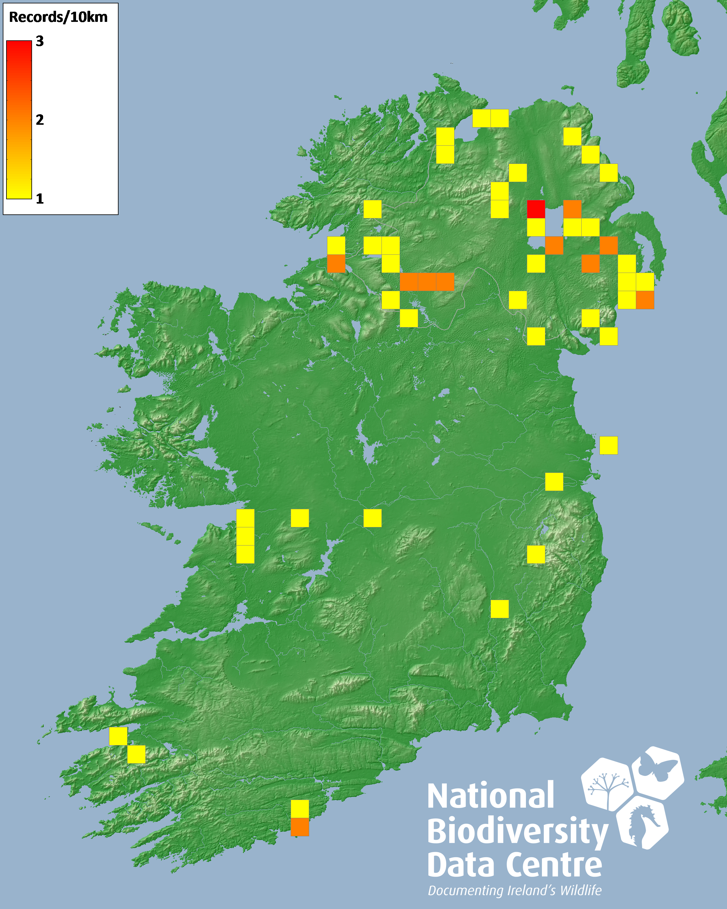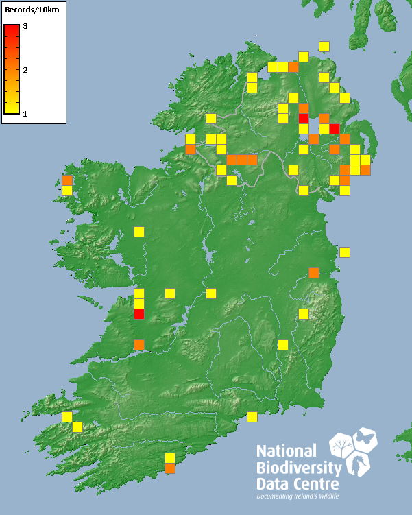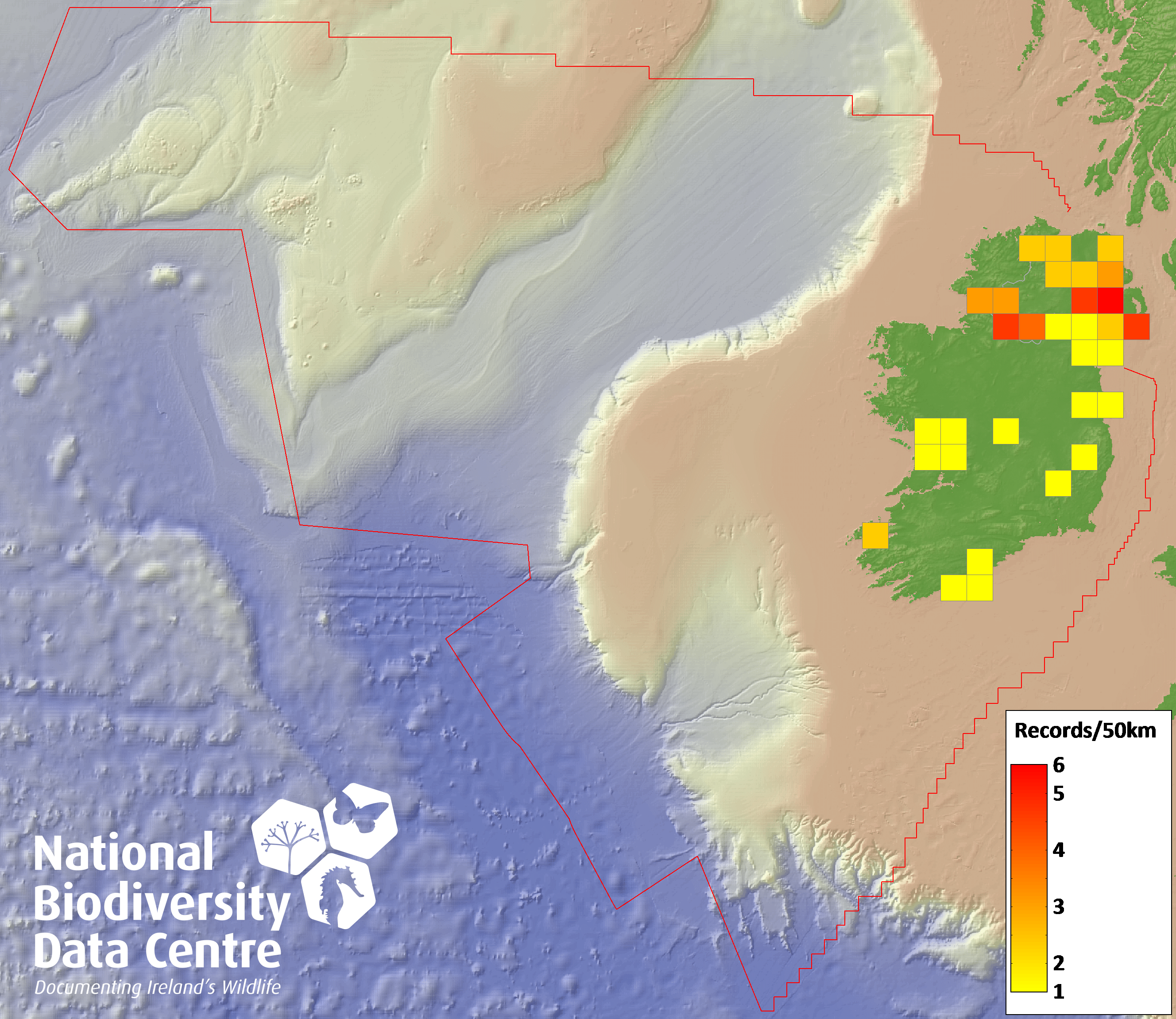 Distribution of the number of records recorded within each 10km grid square (ITM).Marine Map - 50km