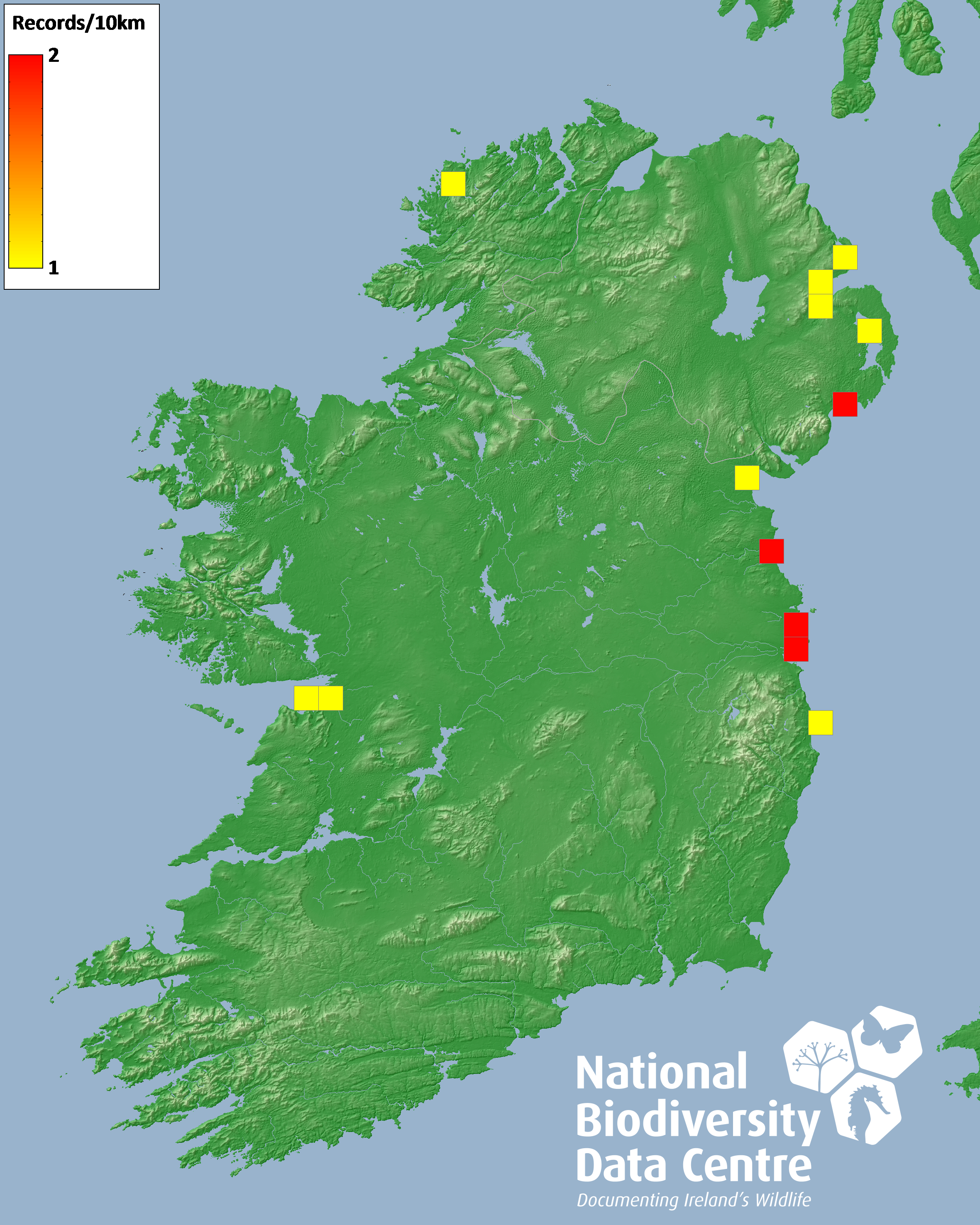 Distribution of the number of records recorded within each 10km grid square (ITM).Marine Map - 50km