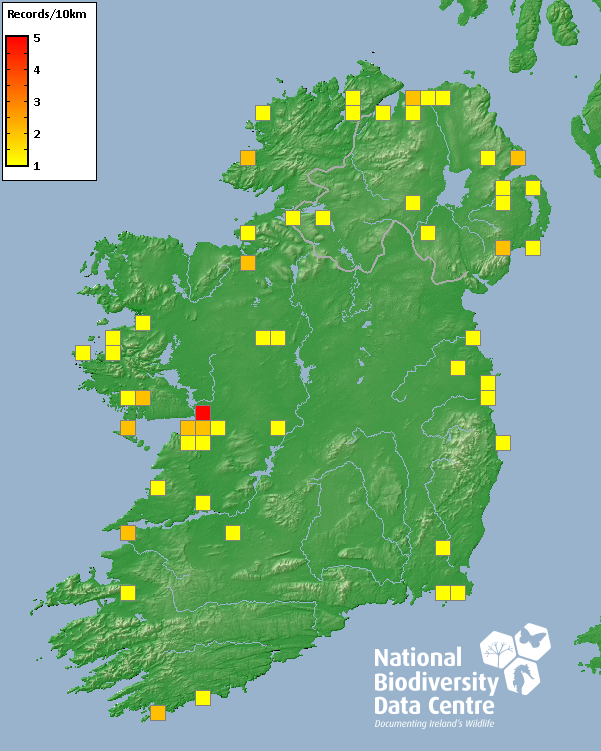 Distribution of the number of records recorded within each 10km grid square (ITM).Marine Map - 50km
