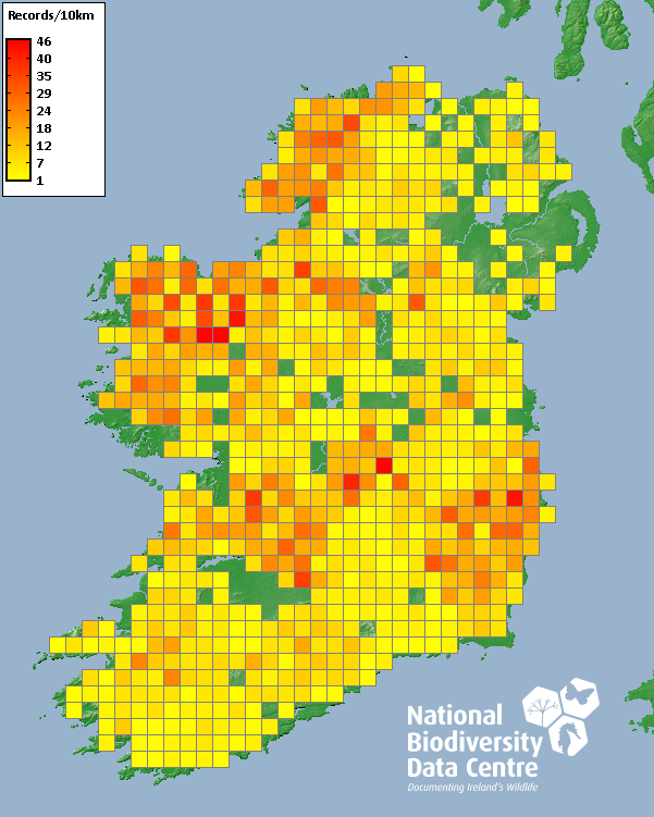 Distribution of the number of records recorded within each 10km grid square (ITM).Marine Map - 50km