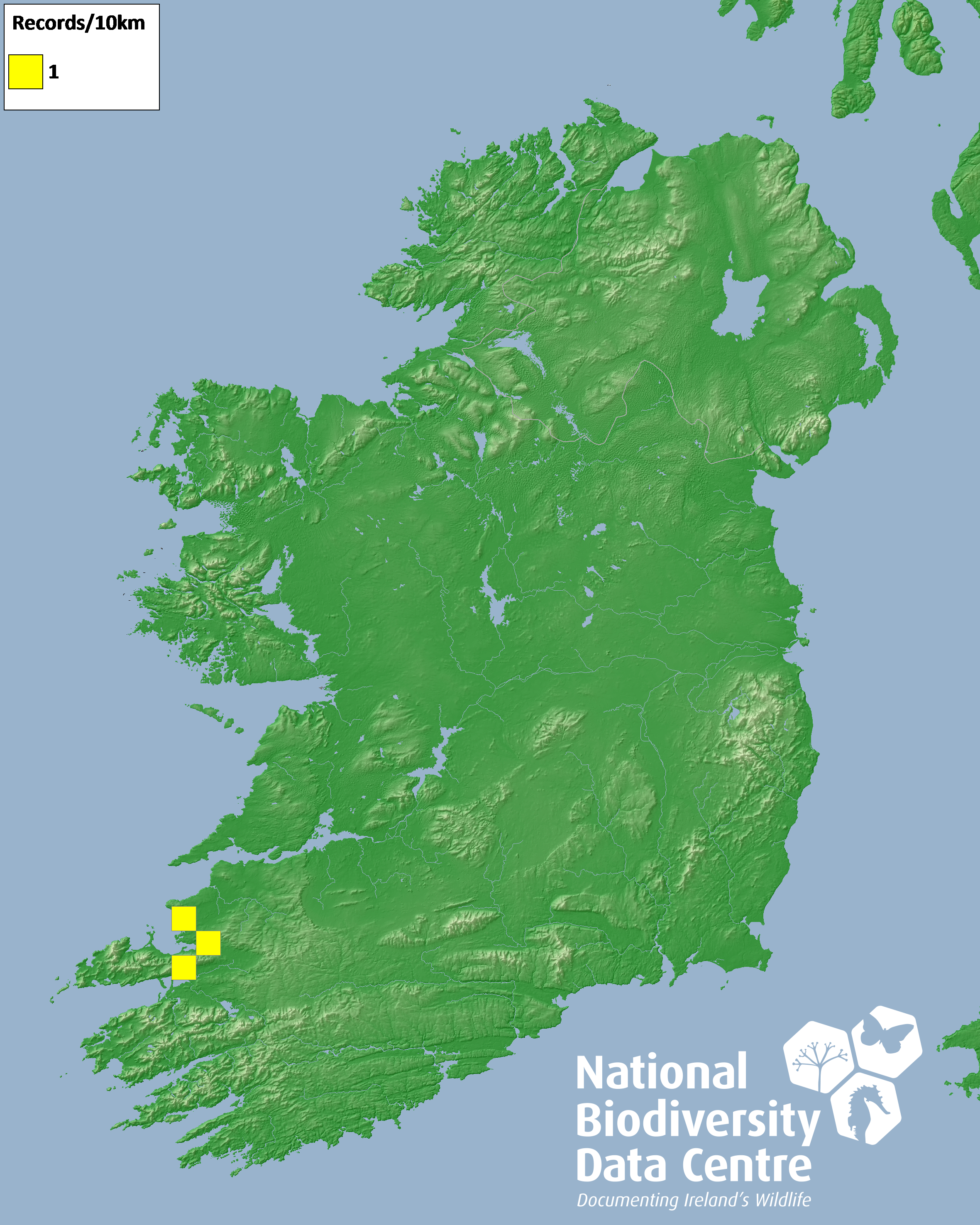 Distribution of the number of records recorded within each 10km grid square (ITM).Marine Map - 50km