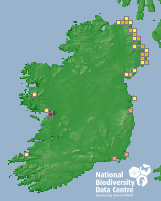 Distribution of the number of records recorded within each 10km grid square (ITM).Marine Map - 50km