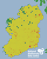 Distribution of the number of records recorded within each 10km grid square (ITM).Marine Map - 50km