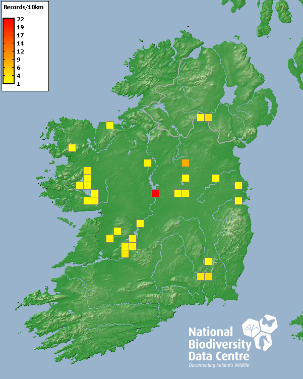 Distribution of the number of records recorded within each 10km grid square (ITM).Marine Map - 50km