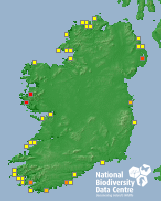 Distribution of the number of records recorded within each 10km grid square (ITM).Marine Map - 50km