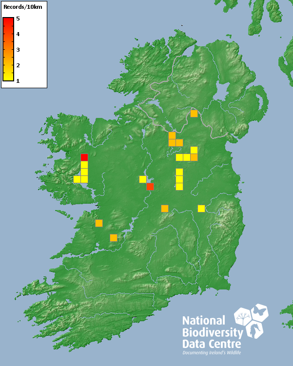 Distribution of the number of records recorded within each 10km grid square (ITM).Marine Map - 50km