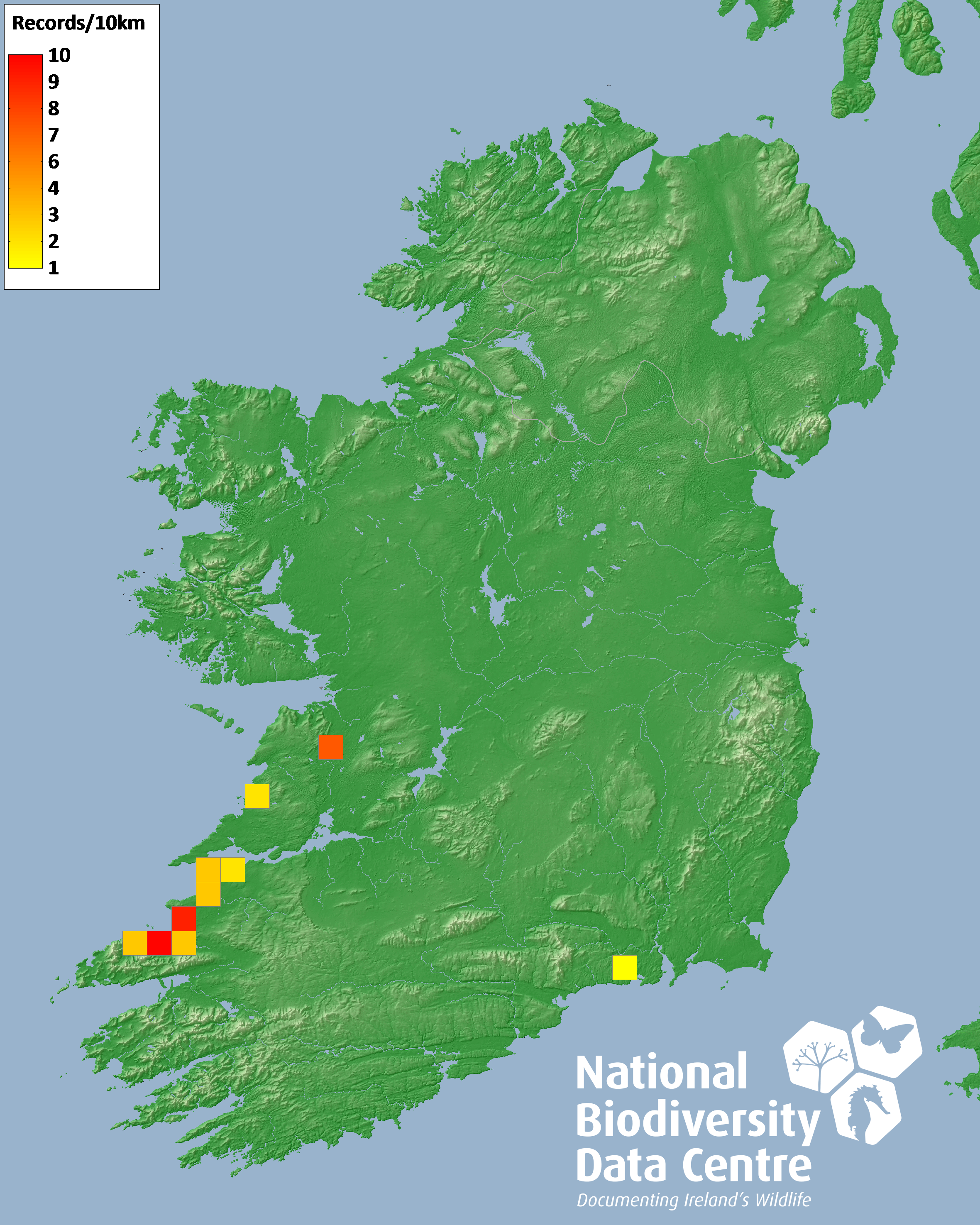 Distribution of the number of records recorded within each 10km grid square (ITM).Marine Map - 50km
