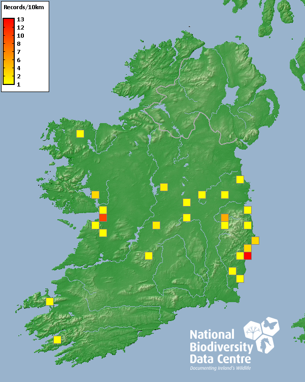 Distribution of the number of records recorded within each 10km grid square (ITM).Marine Map - 50km