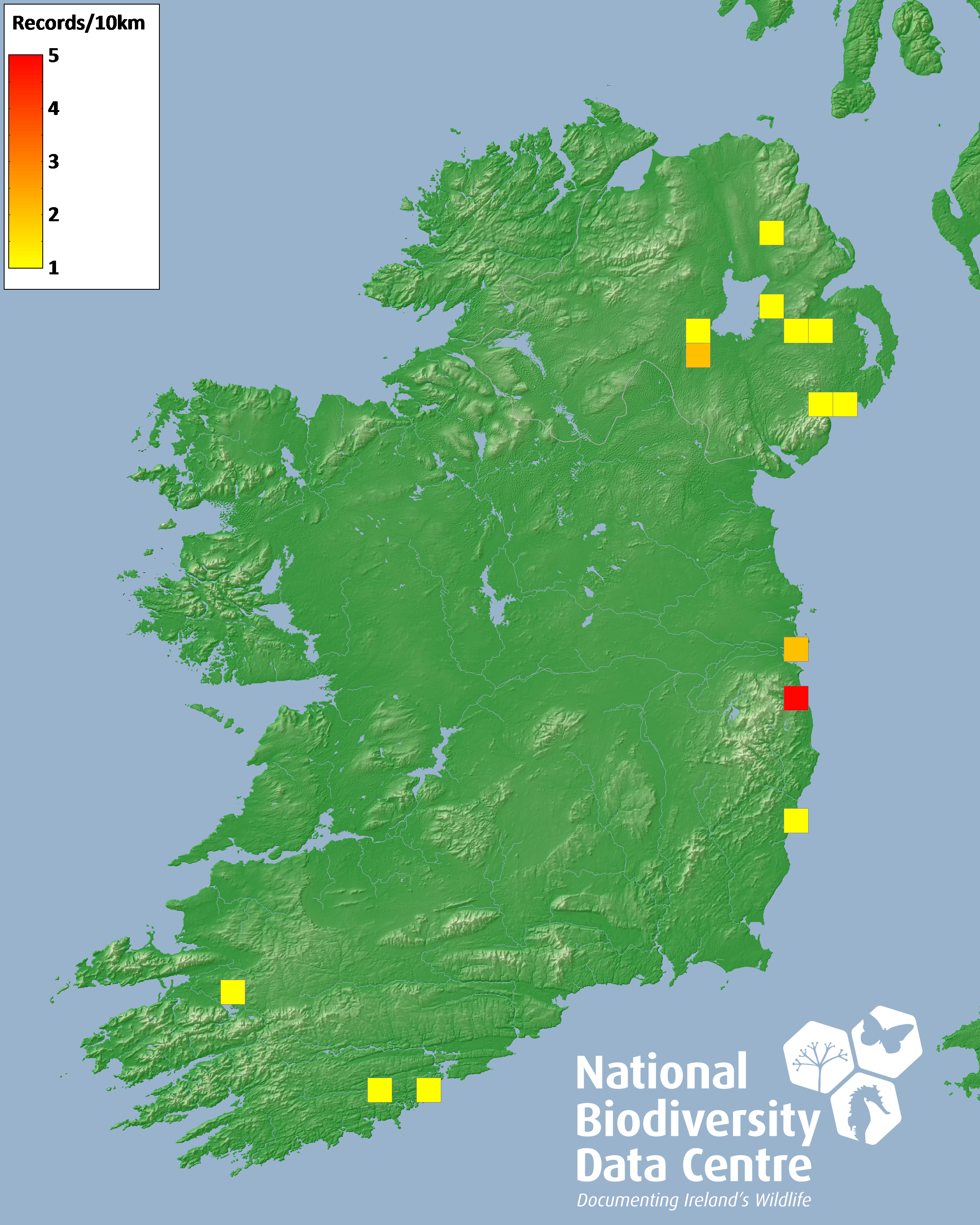 Distribution of the number of records recorded within each 10km grid square (ITM).Marine Map - 50km