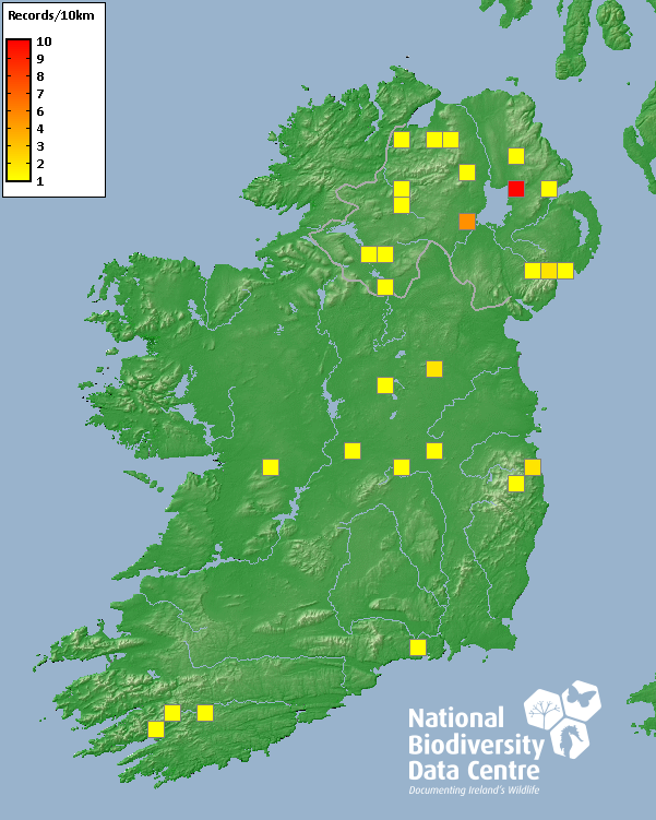 Distribution of the number of records recorded within each 10km grid square (ITM).Marine Map - 50km