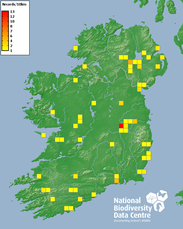 Distribution of the number of records recorded within each 10km grid square (ITM).Marine Map - 50km