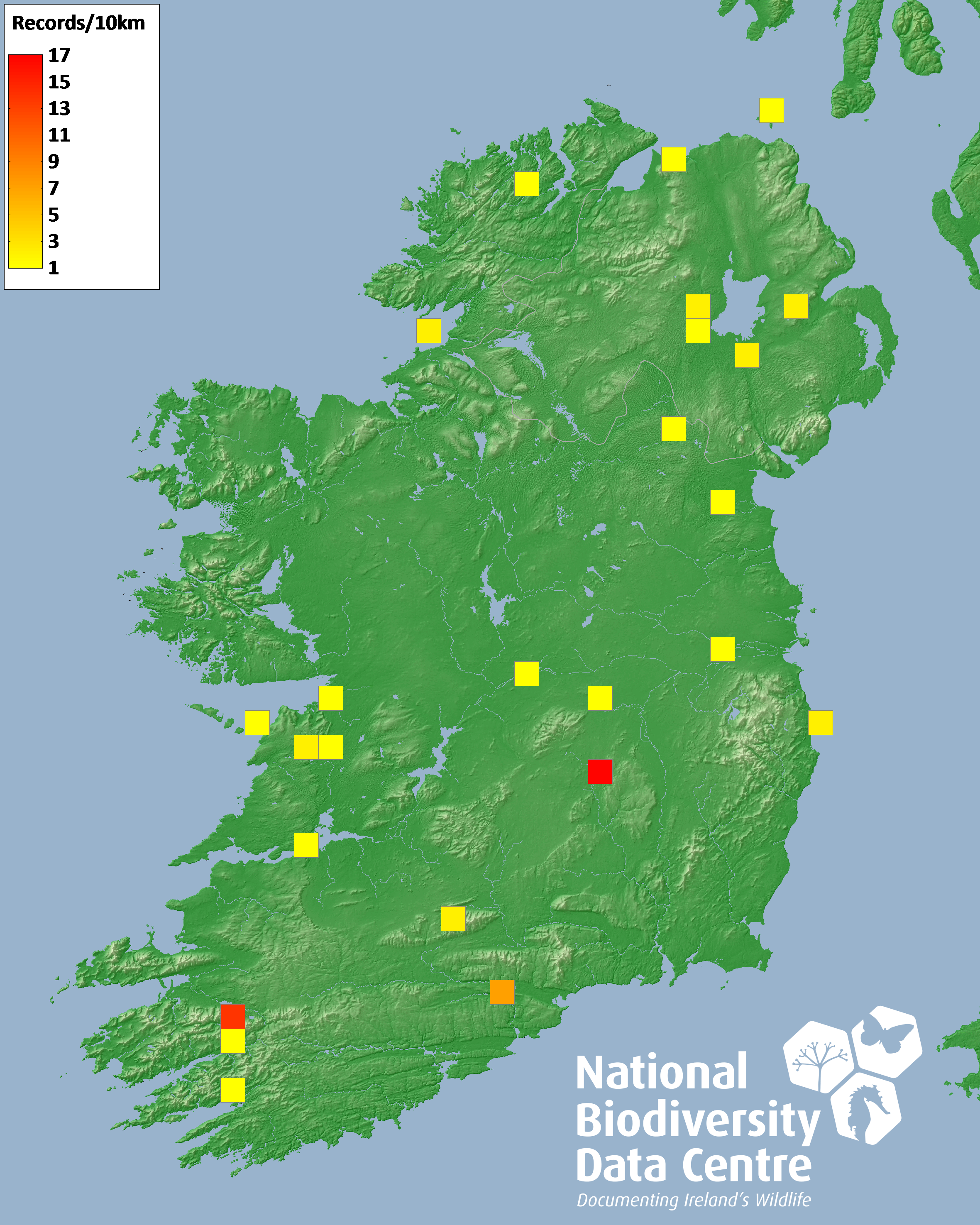 Distribution of the number of records recorded within each 10km grid square (ITM).Marine Map - 50km
