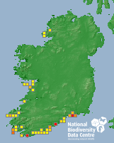 Distribution of the number of records recorded within each 10km grid square (ITM).Marine Map - 50km