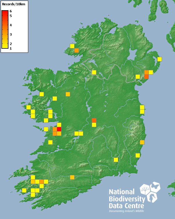 Distribution of the number of records recorded within each 10km grid square (ITM).Marine Map - 50km
