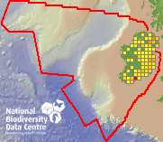 Distribution of the number of records recorded within each 10km grid square (ITM).Marine Map - 50km