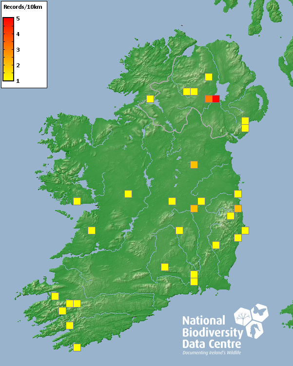 Distribution of the number of records recorded within each 10km grid square (ITM).Marine Map - 50km