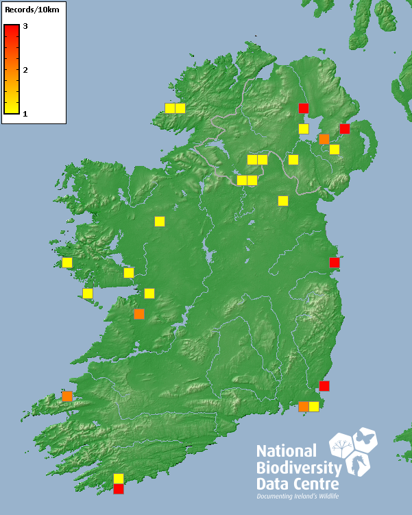Distribution of the number of records recorded within each 10km grid square (ITM).Marine Map - 50km