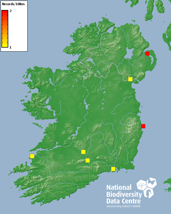 Distribution of the number of records recorded within each 10km grid square (ITM).Marine Map - 50km