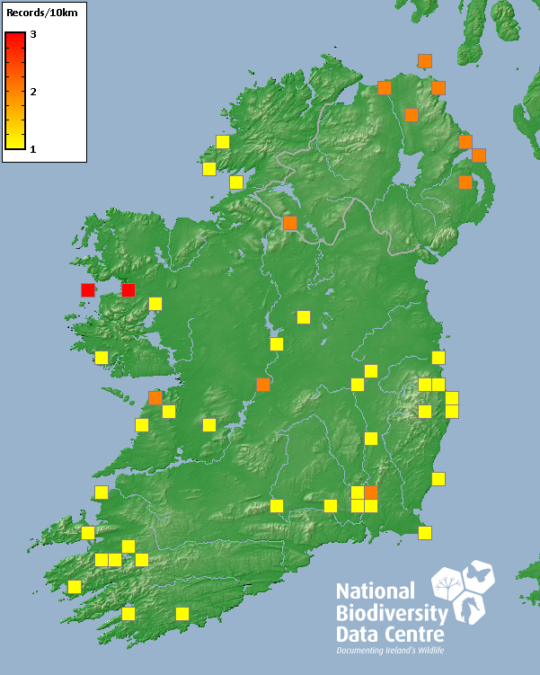 Distribution of the number of records recorded within each 10km grid square (ITM).Marine Map - 50km