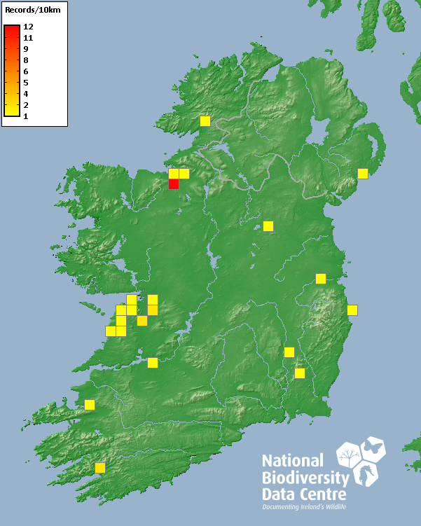 Distribution of the number of records recorded within each 10km grid square (ITM).Marine Map - 50km