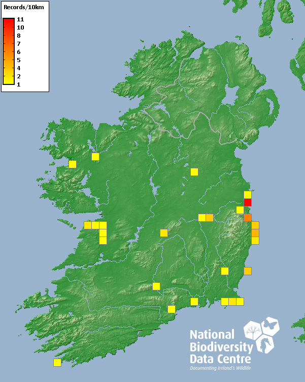 Distribution of the number of records recorded within each 10km grid square (ITM).Marine Map - 50km